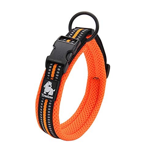 SLKTEE ペット 犬の首輪 訓練 反射材料 小型、中型、大型犬用 通気性 調節可能 ハーネス 襟 カラー(S,35-40cm, オレンジ)