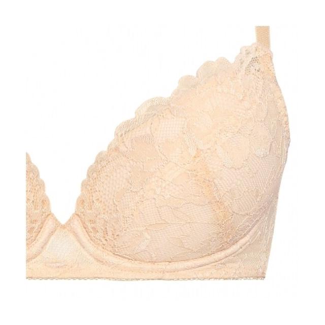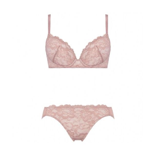 カップとレースのカラーコンビネーションが魅力的な、大柄花レースでフェミニンな気分を楽しめるコレクション。