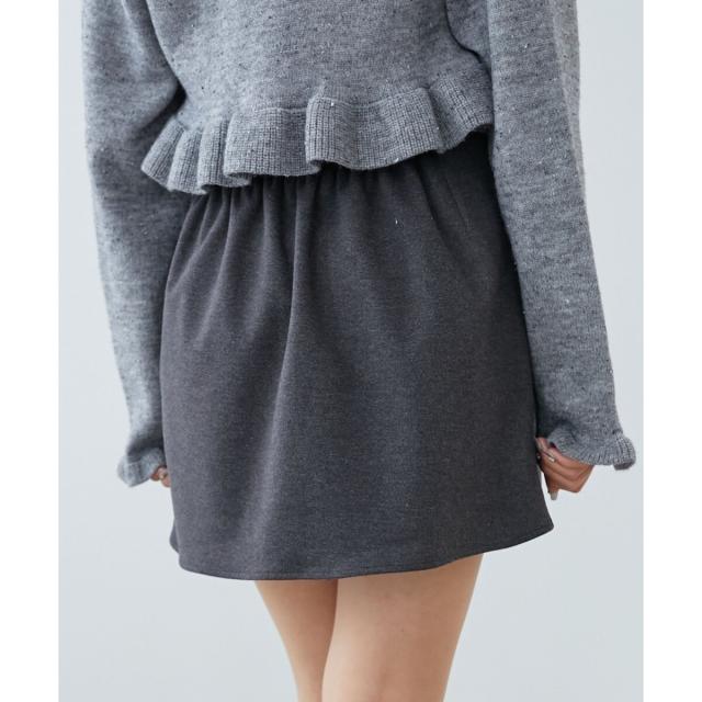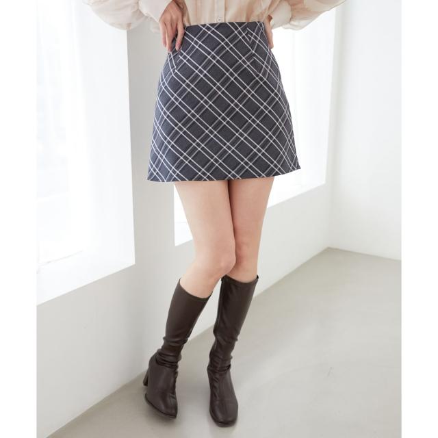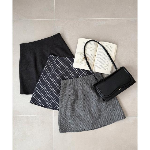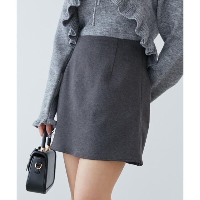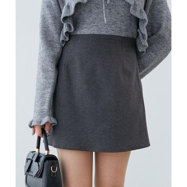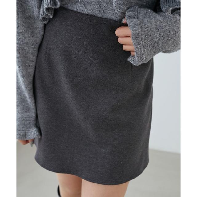 ゆるやかに広がる台形シルエットが大人っぽく、ウエストがスッキリ見えて美脚効果も高めるミニ丈のスカート。