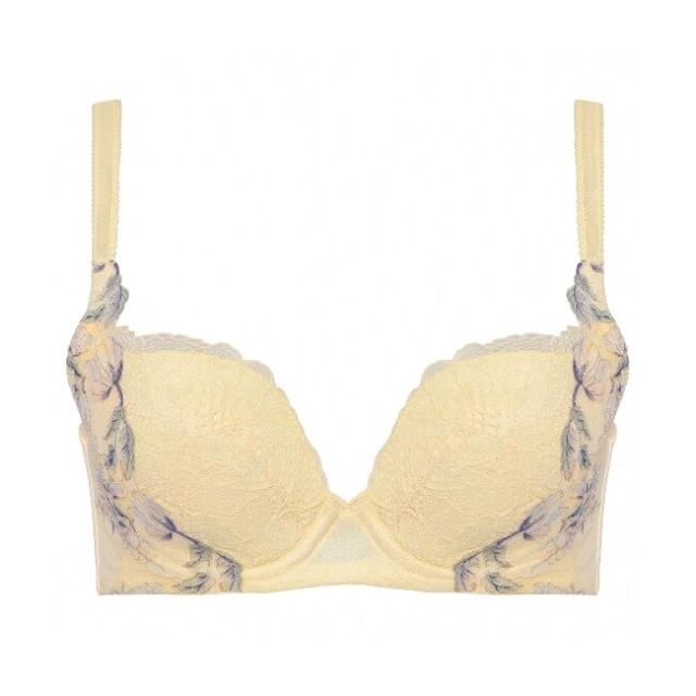 カラーグラデーションが美しいプリントエンブレースと控えめな輝きの繊細な編みレースとのコンビネーションが華やかなブラジャーです。