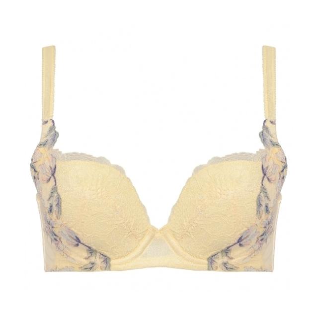 カラーグラデーションが美しいプリントエンブレースと控えめな輝きの繊細な編みレースとのコンビネーションが華やかなブラジャーです。