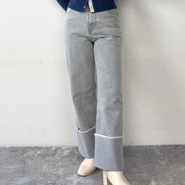 裾のロールアップがトレンド感のあるワイドデニムが登場。