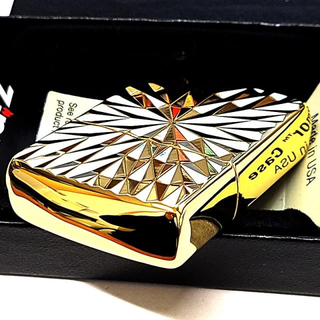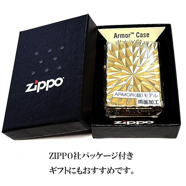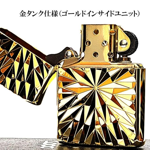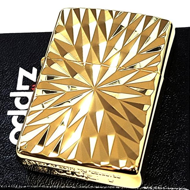ZIPPO アーマー ダイヤカット 両面加工 彫刻 ジッポ ライター ゴールド おしゃれ 彫刻 金チャンバー かっこいい 高級 ダイアモンド 金タンク