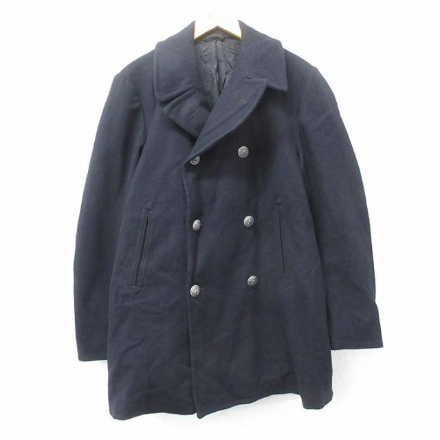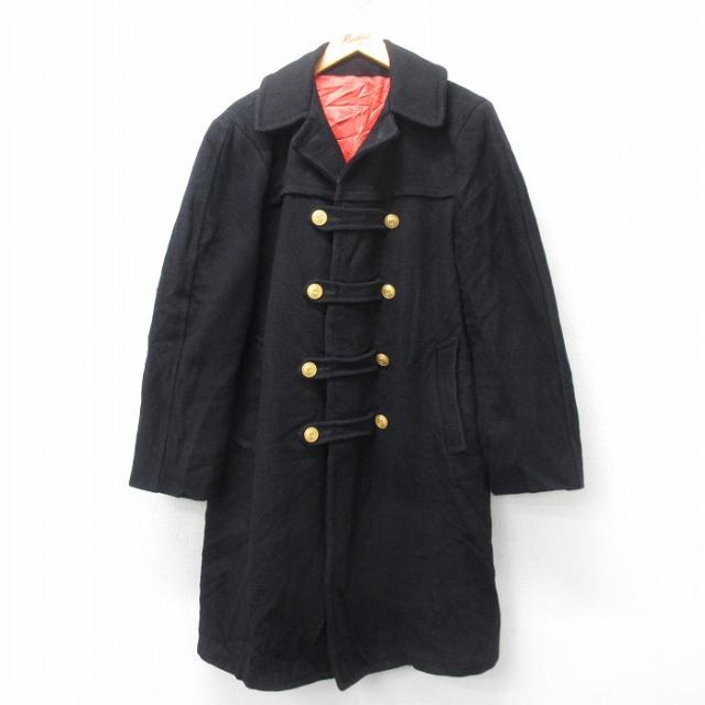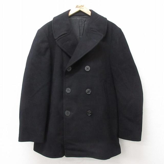 古着 長袖 ビンテージ ミリタリー ピーコート メンズ 70年代 70s ロング丈 ウール 黒 ブラック Mサイズ 中古 アウター 中古 古着