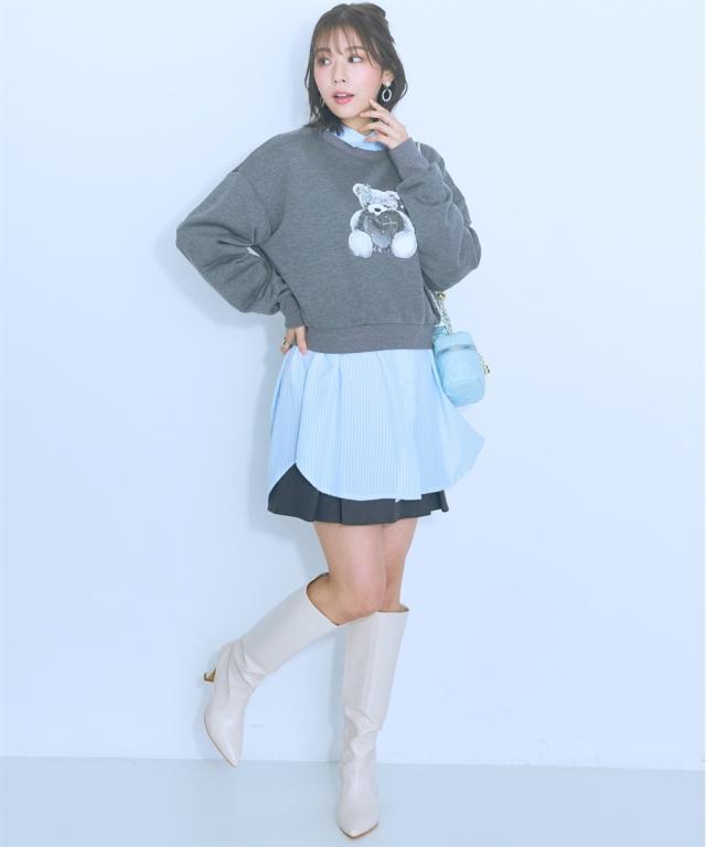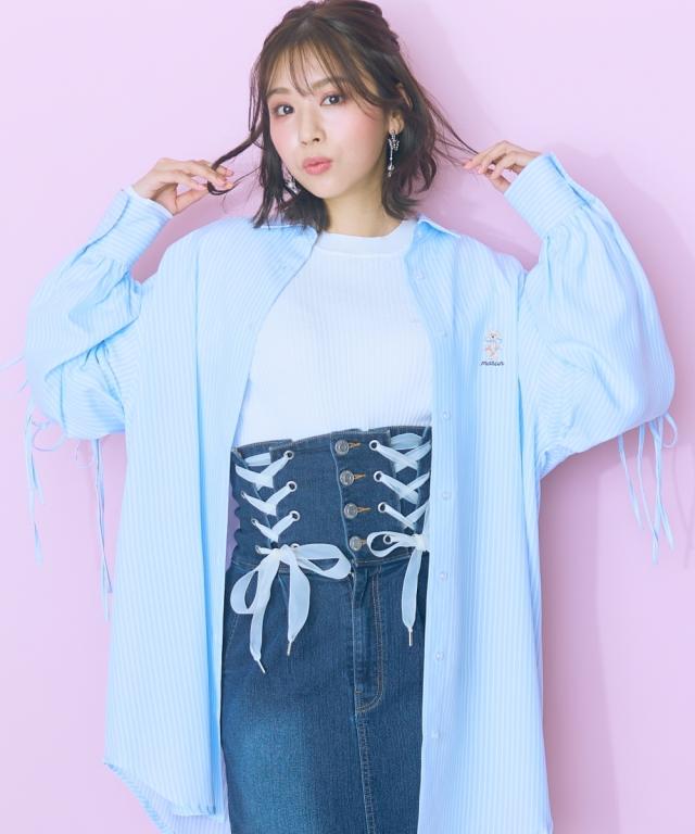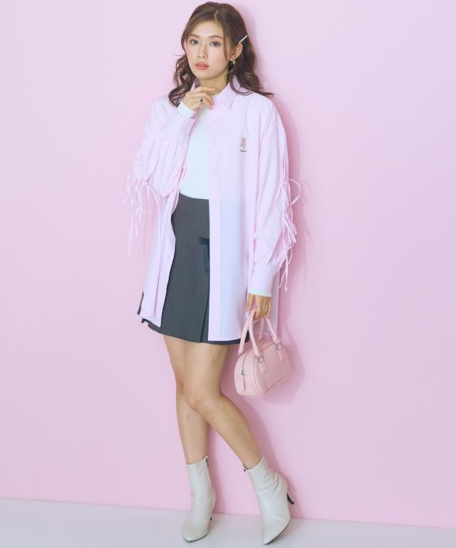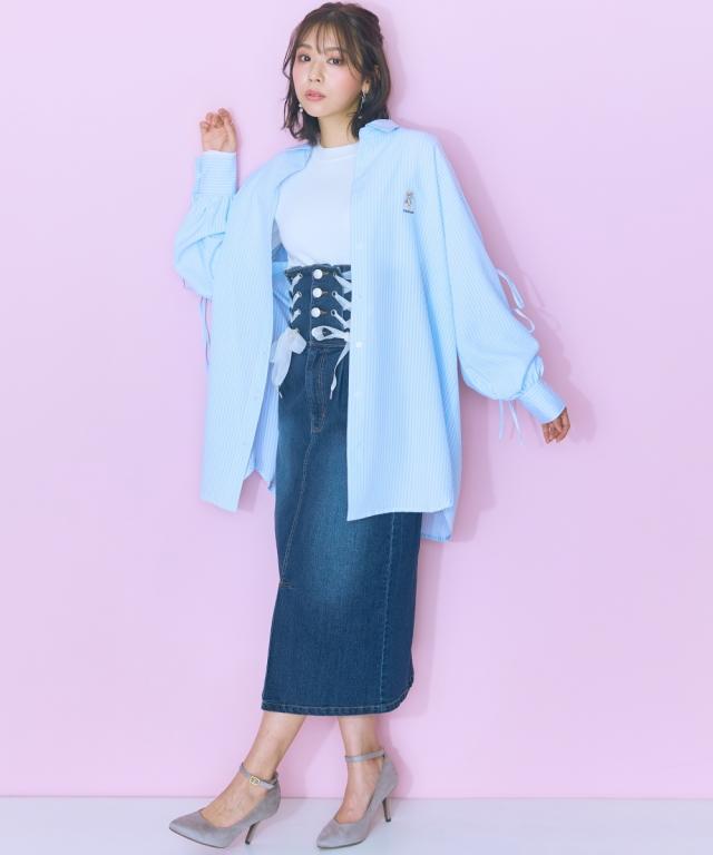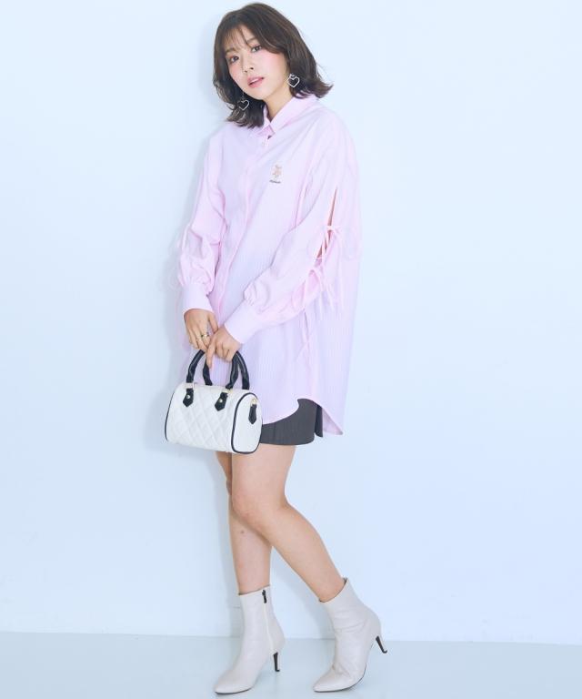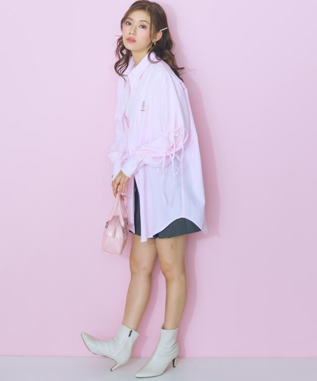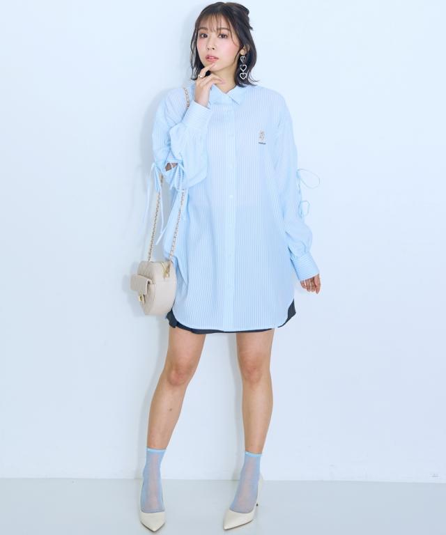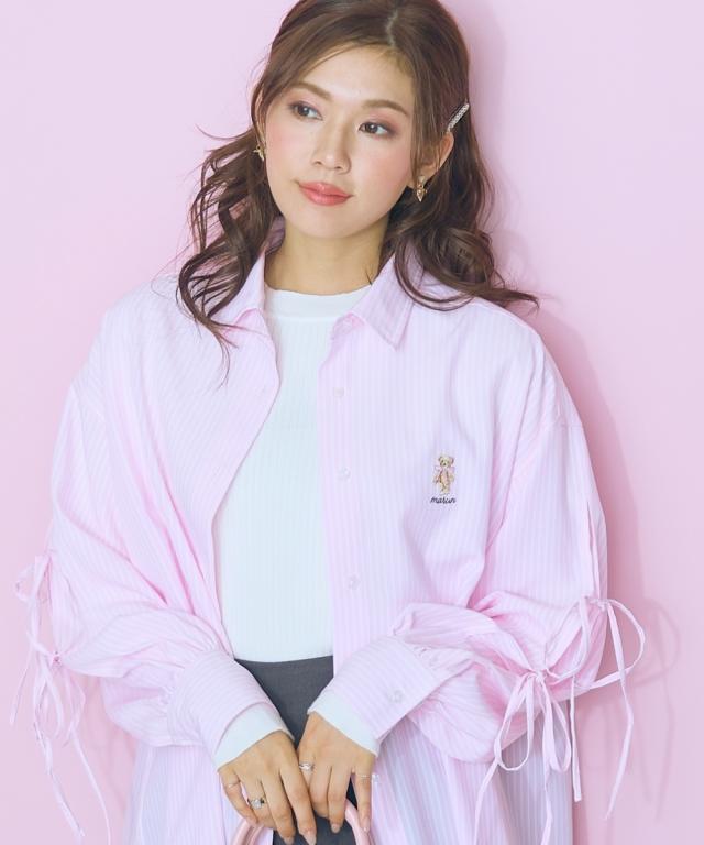 くまちゃん刺しゅうが可愛らしいオーバーサイズシャツ ■デザイン:ロングシャツなので腰回りもカバーできる丈感 袖は肌をチラみせできるリボンデザインになっています。はおりにしたり、1枚でワンピース風に着用できたりと着回し抜群 ■素材:さらっとした生地感で、心地の良い快適な着用感に。