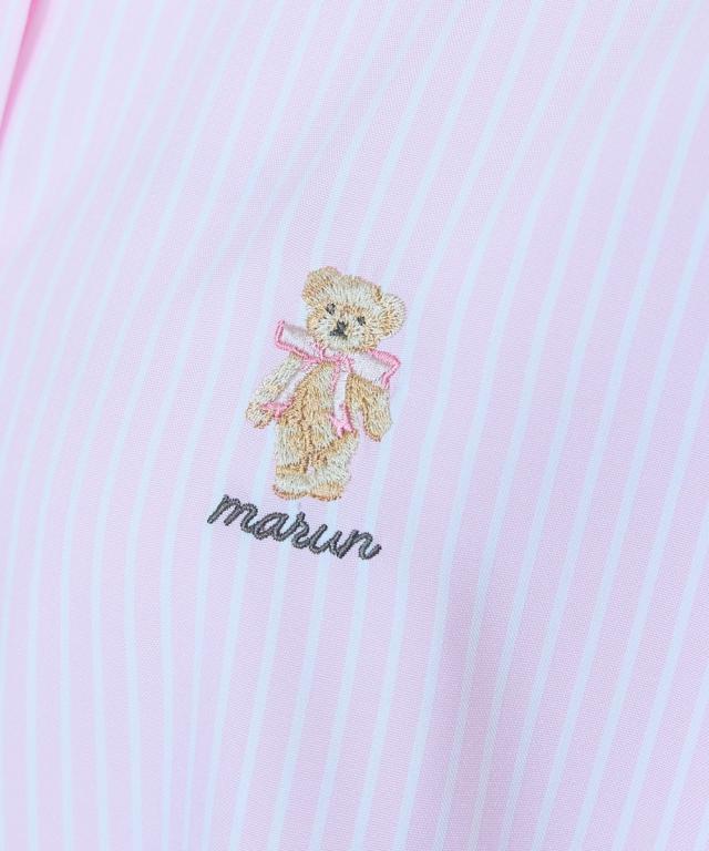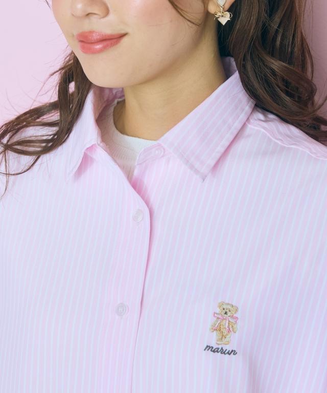 大きいサイズ くまちゃん刺しゅうスリットリボンロングシャツ marun