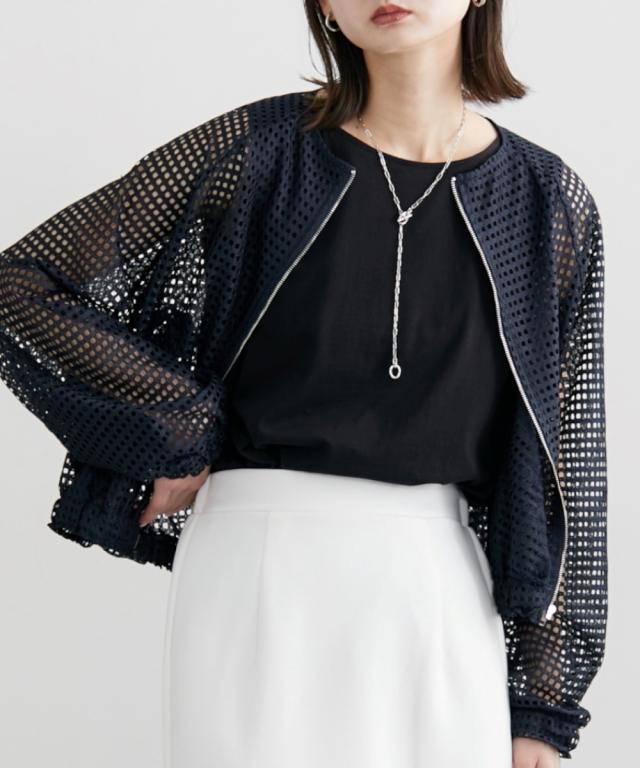 夏まで長く使える メッシュシアーブルゾン■デザイン・メッシュの素材のブルゾンなので、素肌を見せて着こなすブルゾンです もちろん長袖Tシャツの上に羽織ってもOK ・夏の季節に半袖やタンク、ワンピースの上にさらっと羽織っても、可愛いコーデが決まります ・着丈も短すぎず、長すぎず、ちょうどよい丈バランスで、誰でも着こなしやすいです!また裾のシャーリングデザインが可愛い ■素材 メッシュ素材のブルゾンです ■おすすめのスタイリングスカートに合わせても、パンツスタイルに合わせても、どんなコーデもOKな優秀ブルゾン 1枚さっと羽織れば、トレンド感を+できる テイストもカジュアルめからキレイめまで幅広くOKです ーーー明日ちょっと褒められる服ーーー 大人トレンドを意識したこだわりのアイテムと着こなしでアナタの毎日に輝きを。 ただシンプルできれいなだけじゃ物足りない。 カジュアルすぎず、スタイリッシュで大人の品性を感じる着こなしに。 そんな、こなれたオシャレを楽しむ女性に寄り添う、 新鮮なリアルクローズをご提案します。