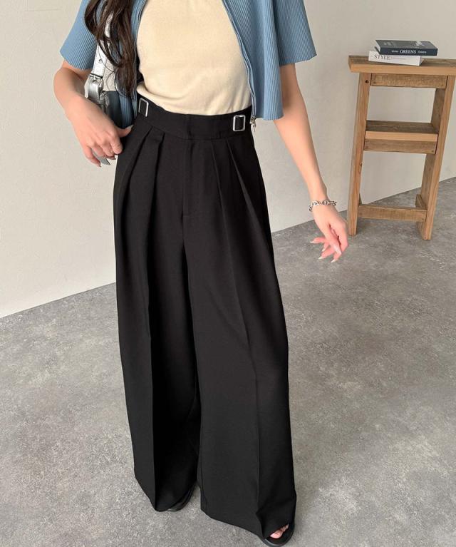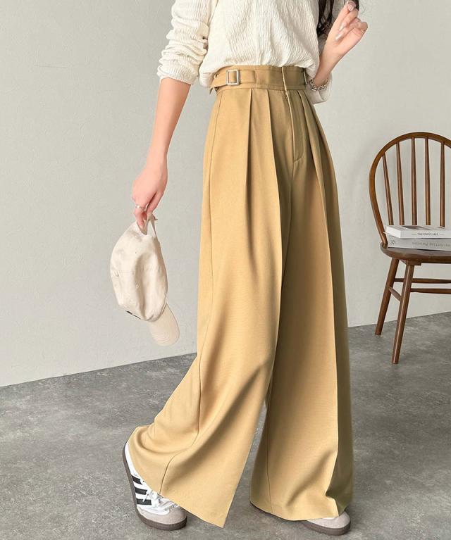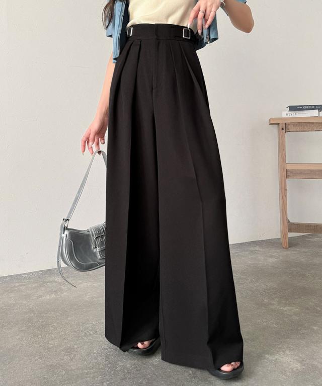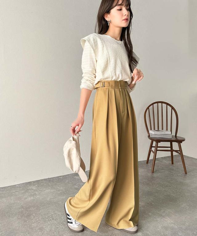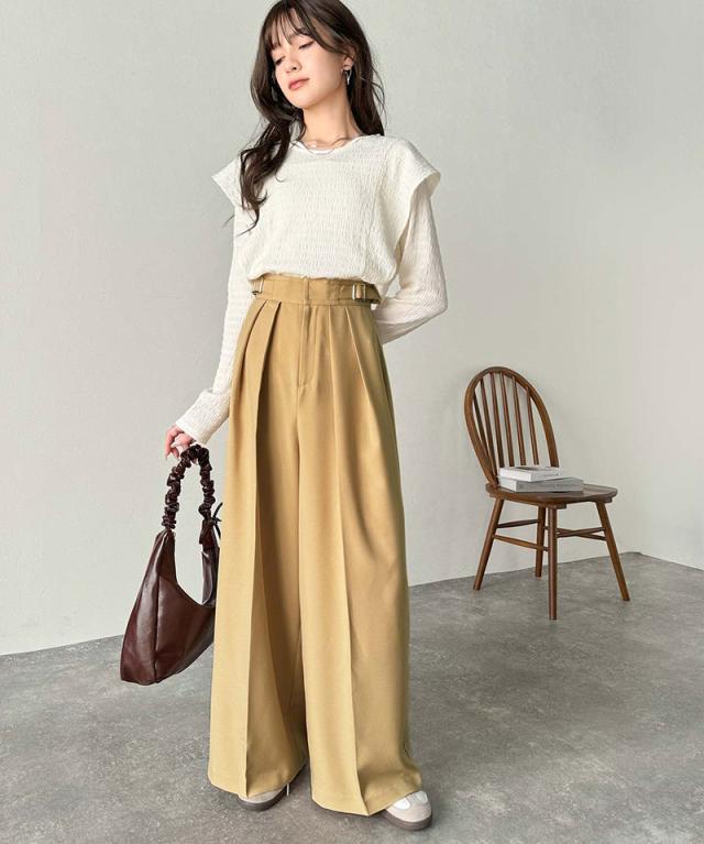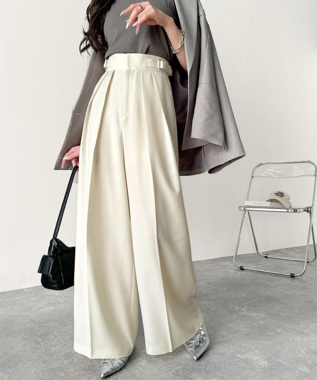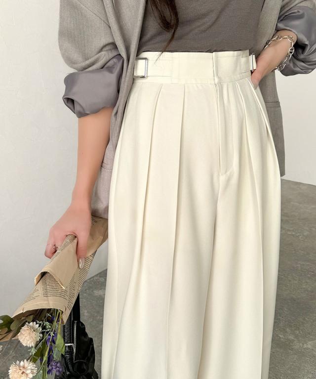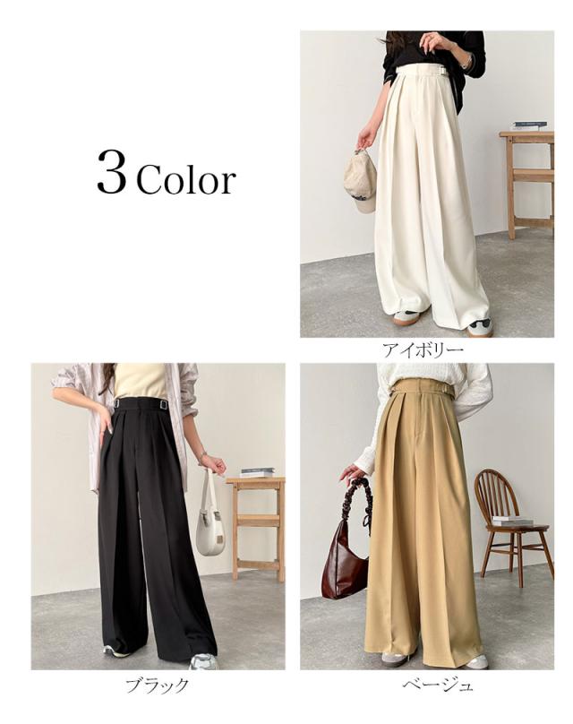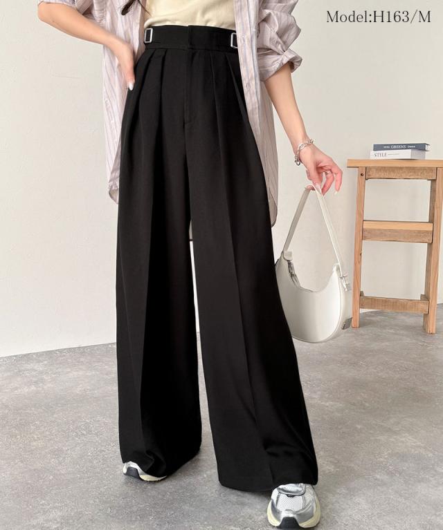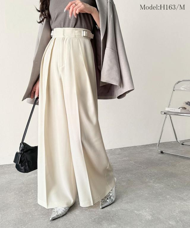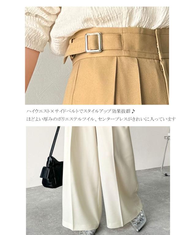 ★美しいシルエットの優秀パンツ♪サイドベルトハイウエスト2タックワイドパンツ★