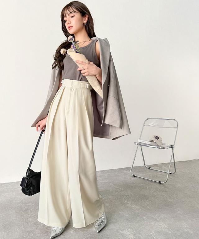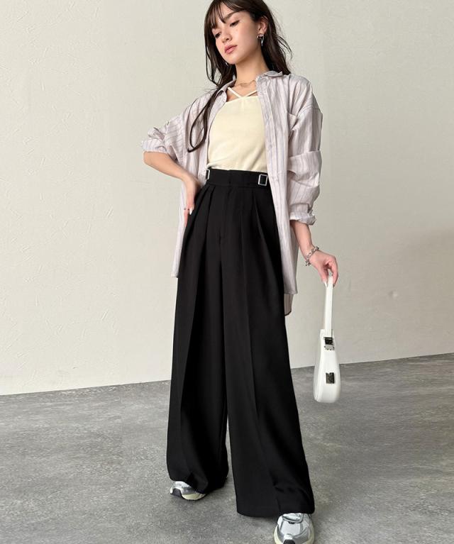 ハイウエスト×サイドベルトでスタイルアップ効果抜群♪