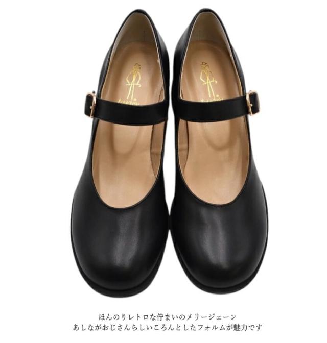 トレンドのメリージェーンスタイルをあしながおじさんらしくアレンジ。ころんと丸みのある「おでこトゥ」 やヒールでほんのりレトロな佇まい。履き心地の良さもあしながおじさんならでは。 ゆったりワイドなスクエアトゥは指先を締め付けません。太めヒールでスタイルアップしつつ、歩きやすさもキープ。ヒールスタイルでも疲れにくい、足に優しい一足です。