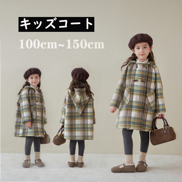 キッズコートロング丈コート 女の子コート 長袖 チェック柄通勤 通学 冬 秋 春 ロングコートオシャレ きれいめ カジュアル ファッション 防寒 寒さ対策 あったか eg016zuzuzu