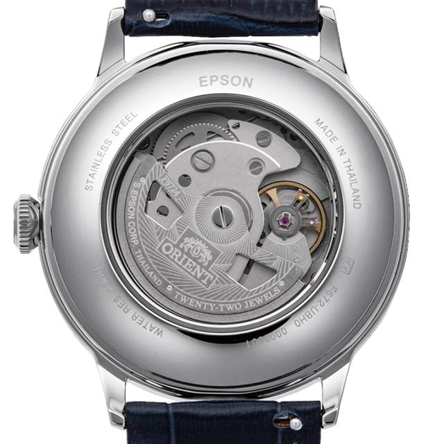 その他特徴:自動巻(手巻付)、秒針停止装置付、22石、シースルーバック、日付