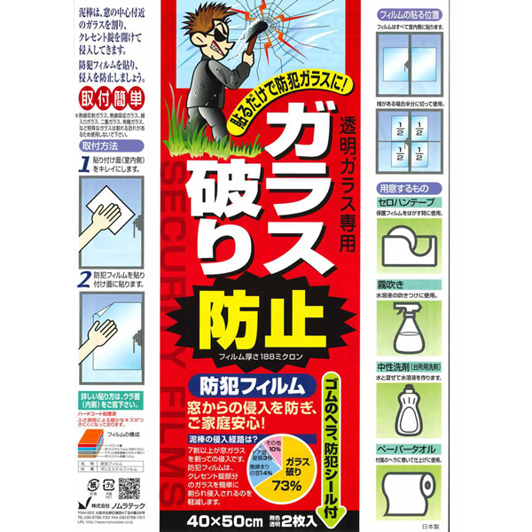 在庫限り 透明ガラス専用 防犯フイルム 40×90cm 2枚入 ノムラテック N-2081 窓防犯用品