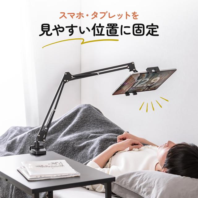 ⇒ご購入の前にご確認下さい寝ながらの使用がしやすい、クランプで挟み込み固定が可能なタブレット・スマホアームホルダー。縦向き横向き設置両対応の寝ながらタブレット・スマホアームスタンド。4〜12.9インチまで対応。【WEB限定商品】
