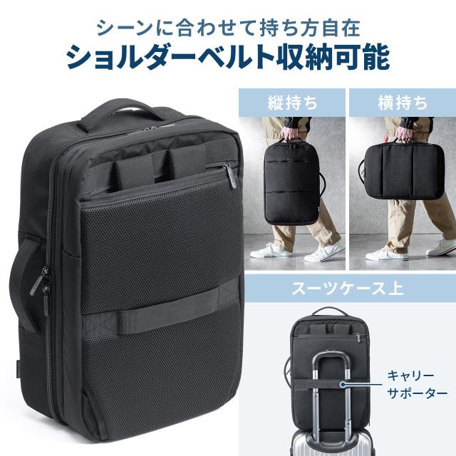 ●ショルダーベルトは収納可能なのでハンドルだけで持ち運ぶ際や、キャリーサポーターの使用時に邪魔になりません。