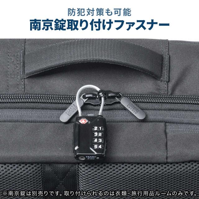 ●衣類・旅行用品ルームは南京錠取り付けに対応したファスナーで防犯対策も可能です。