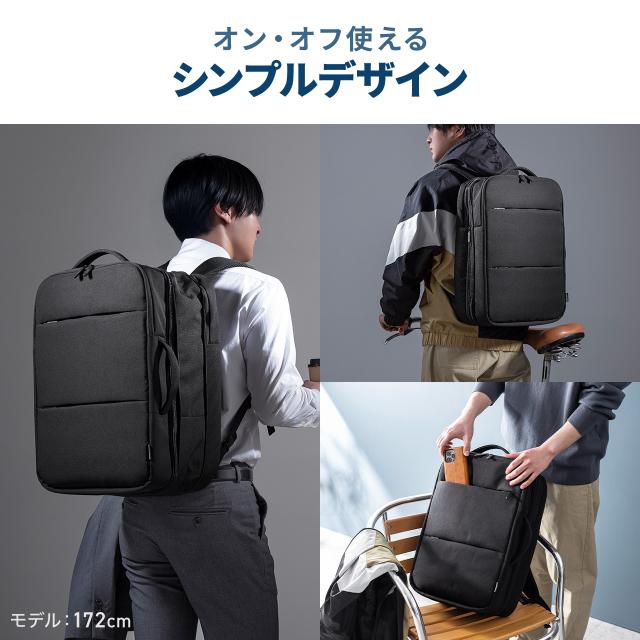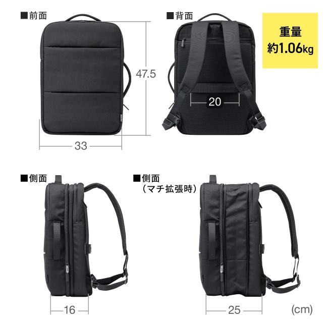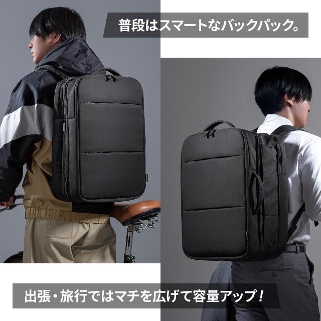 ●普段はスリム、荷物が増える時はマチ拡張で約1.5倍に大きくできるリュックサックです。●普段はスマートなリュックとして使い、出張や旅行ではマチを広げて2〜3泊の荷物を持ち運べます。
