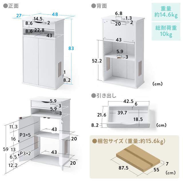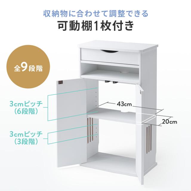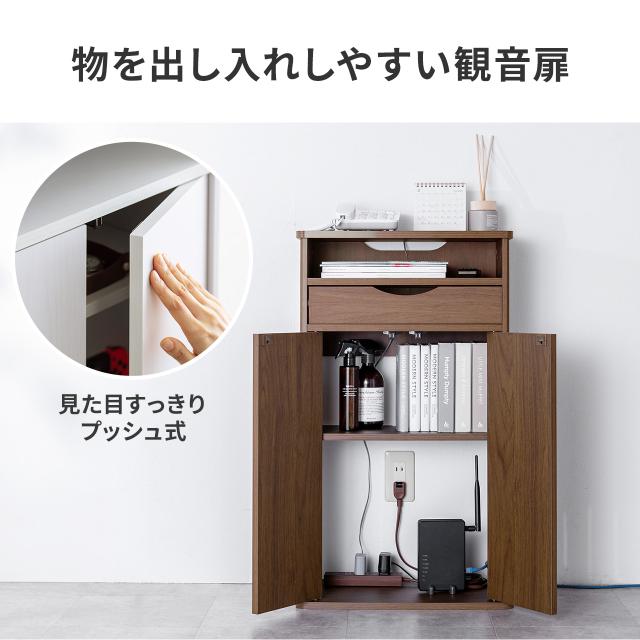 ルーター収納ボックス 電話台 幅48cm 扉付 引き出し付 木製 ケーブルボックス コード収納 ゲーム機収納 ラック FAX台 モデム収納 ダークブラウン ライトブラウン ホワイト[200-CB064]