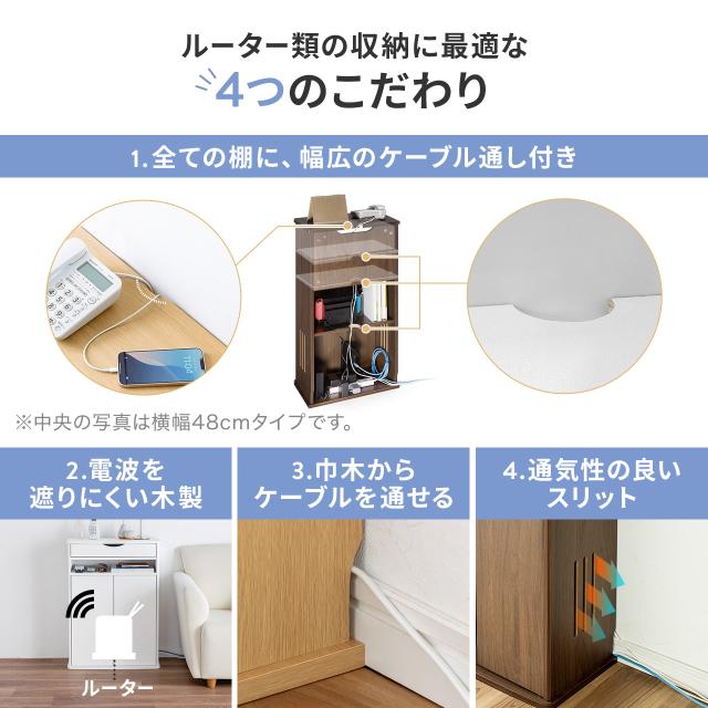 ●本体はすべて木製なので、無線ルーターなどのWi-Fi機器を収納しても電波障害が少なく、快適にお使いいただけます。