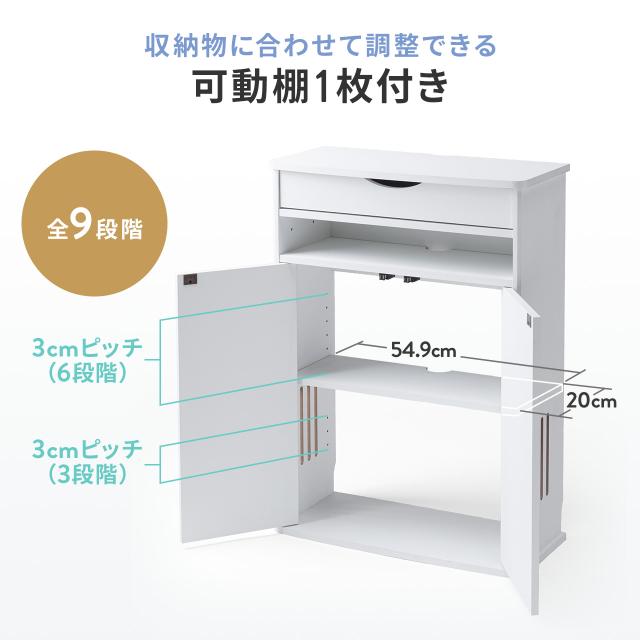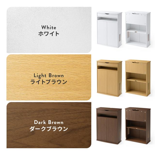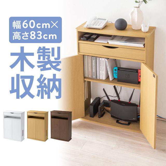ルーター収納ボックス 電話台 幅60cm 扉付 引き出し付 木製 ケーブルボックス コード収納 ゲーム機収納 ラック FAX台 モデム収納 ダークブラウン ライトブラウン ホワイト[200-CB065]