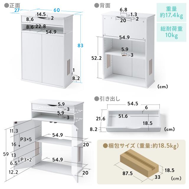 ■製品サイズ:約W60×D27×H83cm