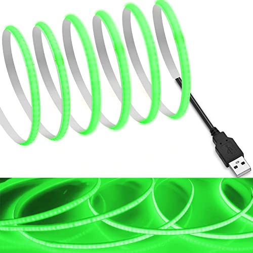 【RYE】 COB テープライトLEDストリップライトフレキシブル 高密度 幅5mm 隠れたLEDテープライト2.5m 320LEDs/m 緑色 DC5V 180°発光CRI>