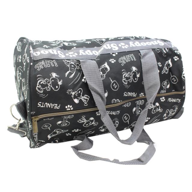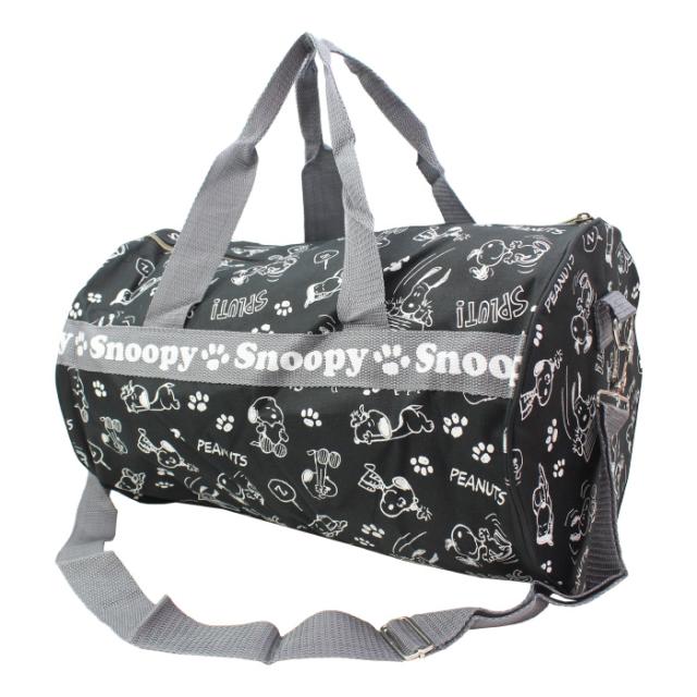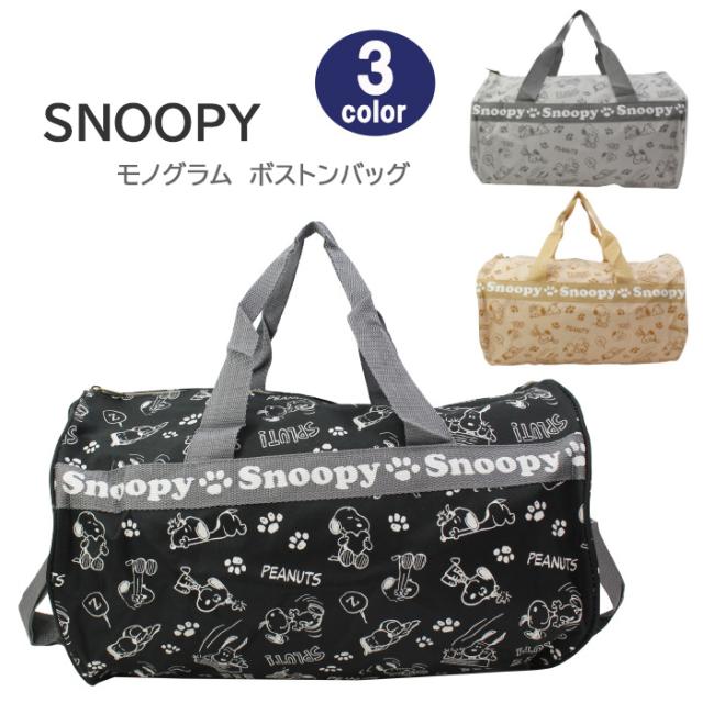 【特 徴】スヌーピーがモノグラムにプリントされた筒形のボストンバッグ!