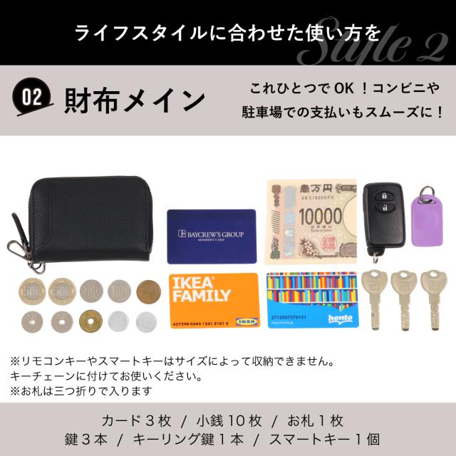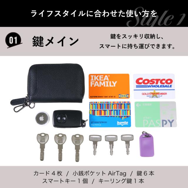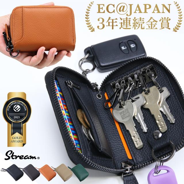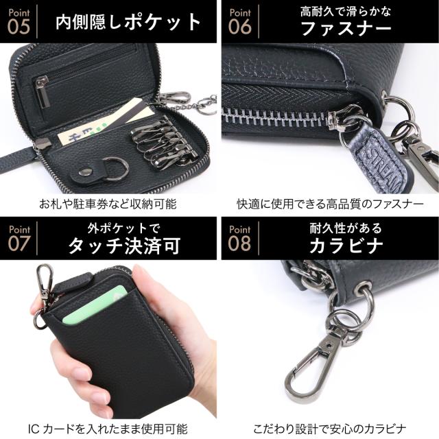 キーケース ながーく使える牛本革 メンズ 本革 スマートキーケース 財布も鍵もこれひとつ レディース 6連フック カラビナ 小銭入れ ミニ財布 [STREAM]