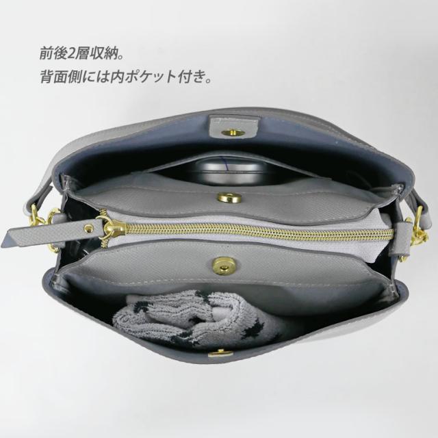 シンプルでありつつも上質な質感とデザインで様々なコーデに合わせやすいバッグです。