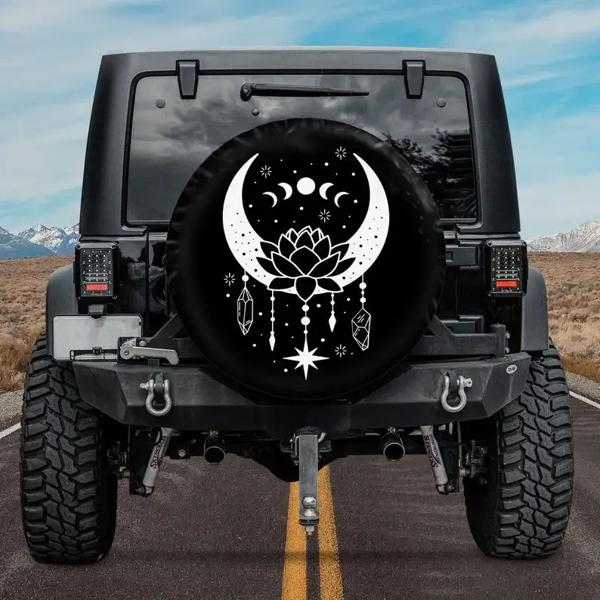 キャンピングカー用スペアタイヤカバー,蓮の花の曼荼羅ムーン,ハロウィーンギフト,パーソナライズされた車のカバー