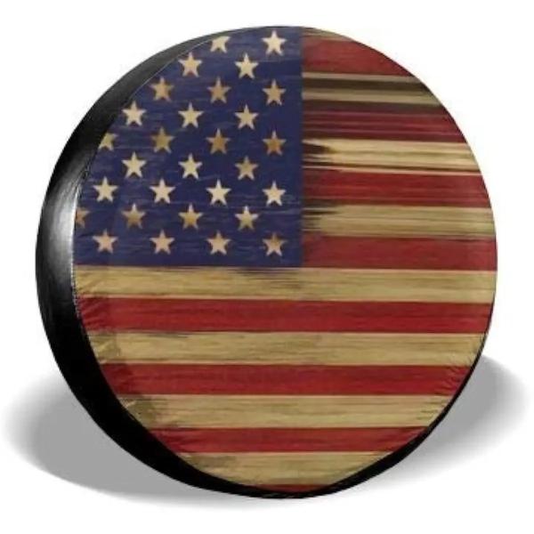 アメリカ国旗の木製スペアタイヤカバー、耐候性、ユニバーサルカーホイール、RV、SUV、トレーラー、トラック、キャンピングカー、旅行