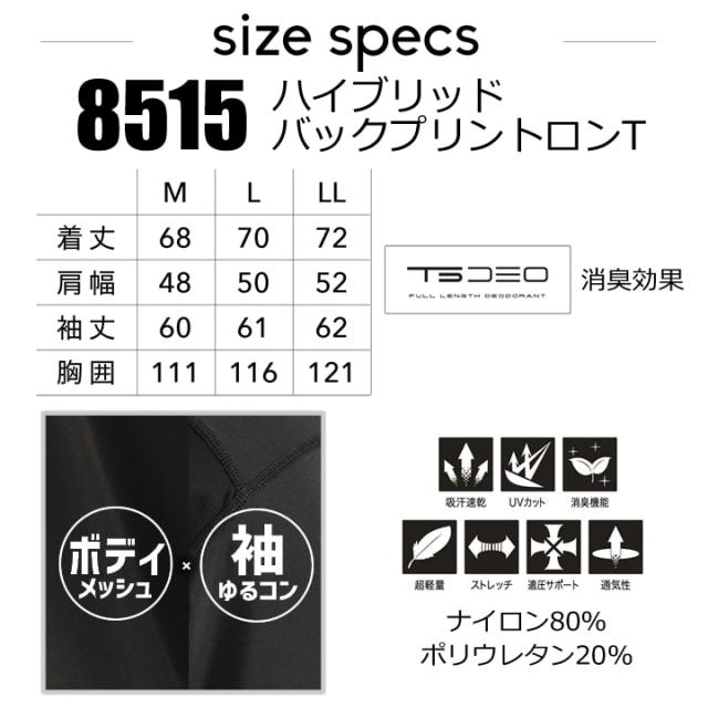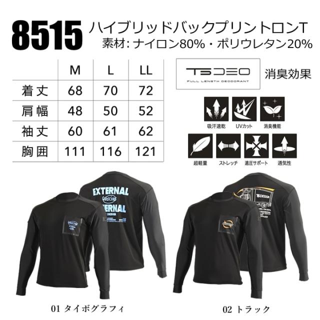 【即日発送】TSデザイン 数量限定 バックプリント長袖Tシャツ 8515 長袖 ロンT 冷感 吸汗速乾 消臭 UVカット 春秋冬 男女兼用 メンズ レディース ストレッチ ライフウェア 作業服 作業着 TS-DESIGN 藤和