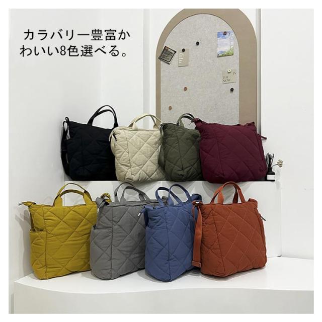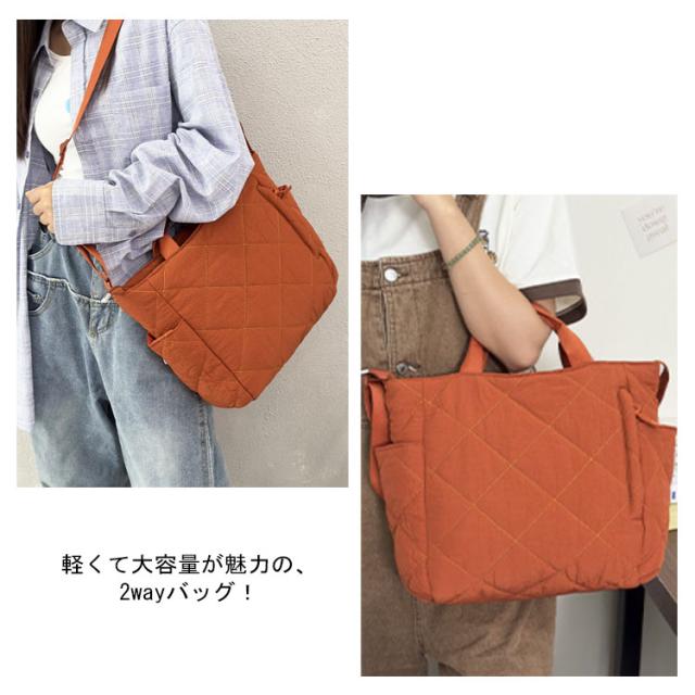 | キルティング 2way軽量バッグ! 大容量 ふっくらとしたナイロンキルティングがお洒落! 軽くて大容量が魅力の、2wayバッグ! ショルダーベルトは長さ調節も可能です。 ふっくらキルティングがおしゃれな高密度ナイロン生地を使用。 縦のファスナーポケットは可愛さをプラス〜 カラバリー豊富かわいい8色選べる。 | |