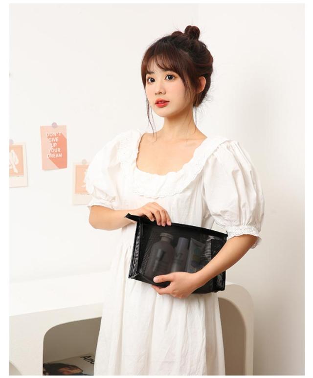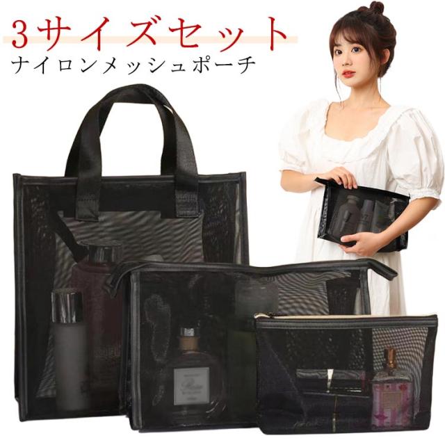 軽量 メッシュポーチ スパバッグ メッシュポーチ 温泉バッグ お風呂バッグ 3サイズセット メッシュ ブラック 旅行用ポーチ トラベルポーチ 荷物 仕分け 収納ポーチ 化粧ポーチ