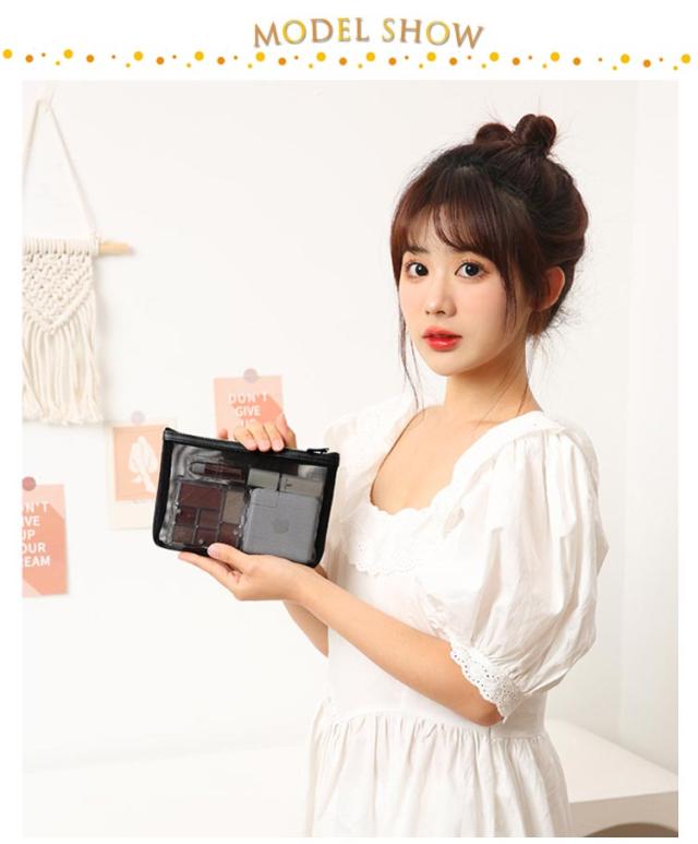 | ・ナイロンメッシュポーチ ・化粧品・シャンプー類などの旅行に持って行く小物をスッキリ収納できるポーチ3個セットです。 ・3つの異なるサイズがセットなので、用途毎の使い分けも◎ ・メッシュタイプなので通気性抜群 ・とても軽いので、持ち歩きも負担になりません。 | |