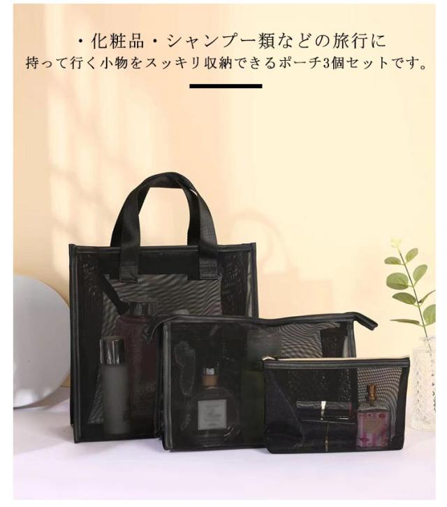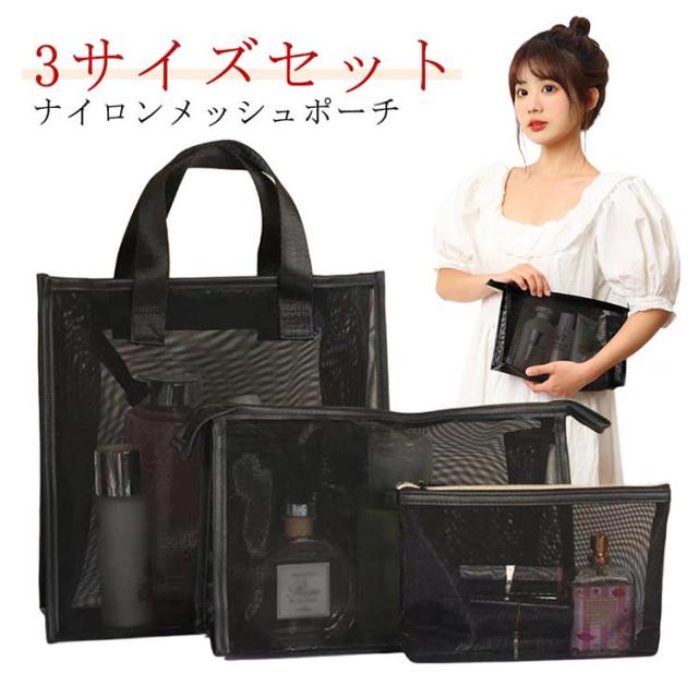 メッシュポーチ メッシュ 旅行用ポーチ お風呂バッグ 温泉バッグ 軽量 メッシュバッグ 3サイズセット ブラック 荷物 トラベルポーチ メッシュポーチ 仕分け 収納ポーチ 化粧ポーチ