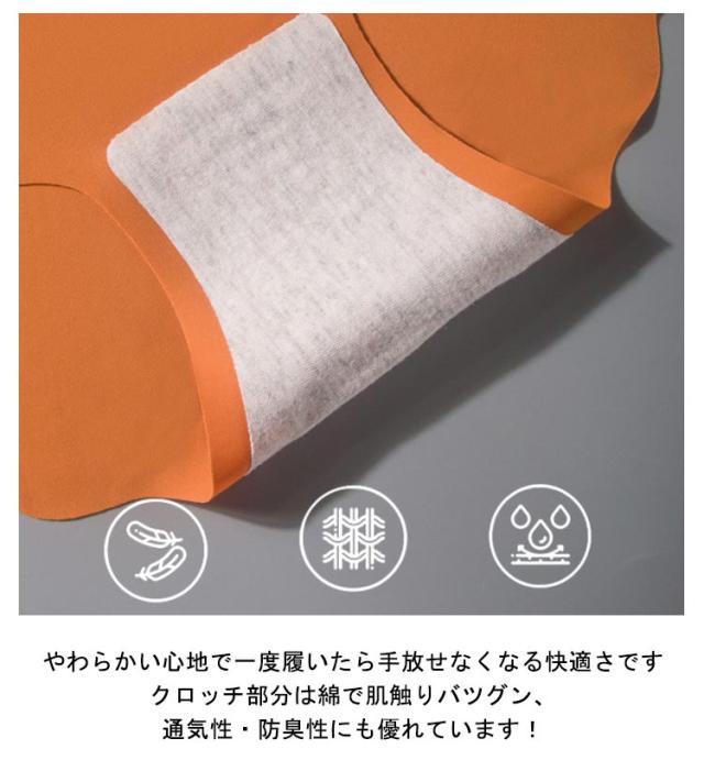 | お腹周りも伸縮性の良いアイスシルク生地で程よい締め付け、フィット感アップ! 肌に接触するだけで心地よいひんやり感。 【優れた伸縮性】優れた伸縮性を持っている素材を使っているので、履き心地抜群!サラサラとした生地が特徴の、アイスシルクシームレスショーツです。ヒップラインを綺麗に見せて、ヒップアップ効果もあります。 【抜群の通気性】非常に吸湿性が高く、通気性が高く、薄手の生地でオールシーズン爽やかに着る事が出来ます。通気性が良い、肌にやさしい、乾燥肌、デリケート肌、肌荒れの方でも快適に使えます。 【ボトムスに響きにくい!】縫い目が無い無縫製なので、ボトムスにパンティラインが響きません! 【快適な履き心地!】ウエスト部分は抜群の伸縮性で血流を妨げません。 やわらかい心地で一度履いたら手放せなくなる快適さです クロッチ部分は綿で肌触りバツグン、通気性・防臭性にも優れています! | |