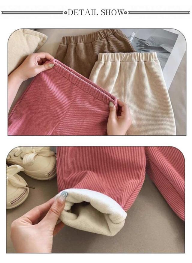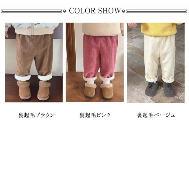 | 80cm 90cm 100cm 110cm 120cm 130cm 秋冬のマストバイアイテム!裏起毛のコーデュロイロングパンツ。 通学・通園はもちろん、お家でのリラックスウェアとしても◎ 裏側にフリース素材、しっかり厚手でへたりにくく、肌触りふわふわで暖かいのが特徴。 ソフトで柔らかい肌触り、どんな動きもサポートしてくれる。 | |