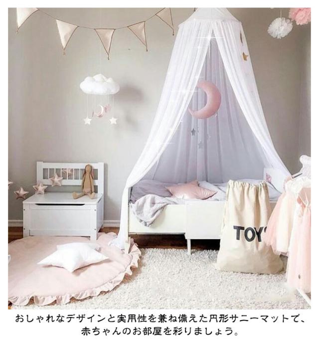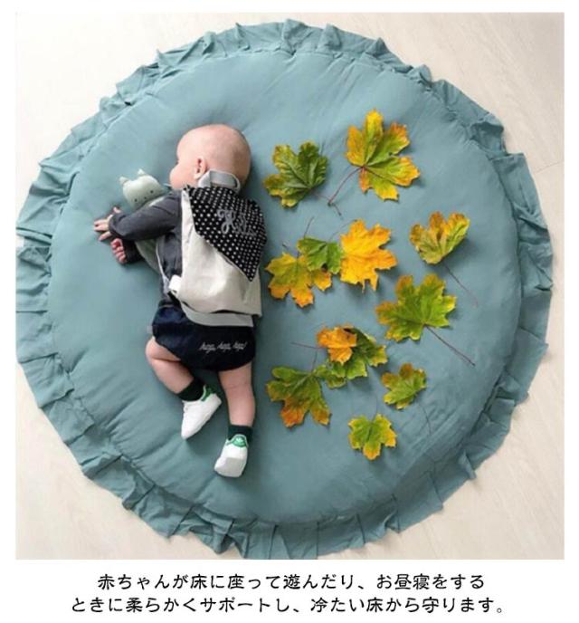 | 取り外せるカバーで洗いやすい コットンマット 直径95cm フリル付き円形サニーマットは、新生児や赤ちゃんのお昼寝や遊びのための理想的なマットです。 シンプルなデザインに、華やかなフリルがアクセントとなり、赤ちゃんがいるお部屋を可愛らしく演出します。 円形のラウンドデザインは、お昼寝マットやプレイマットとして最適で、赤ちゃんが快適に過ごす場所を提供します。 赤ちゃんが床に座って遊んだり、お昼寝をするときに柔らかくサポートし、冷たい床から守ります。 出産祝いやプレゼントとしても喜ばれるアイテムです。 コットン素材で作られ、赤ちゃんの肌に優しい敷きマットとして、安心してご利用いただけます。 おしゃれなデザインと実用性を兼ね備えた円形サニーマットで、赤ちゃんのお部屋を彩りましょう。 | |