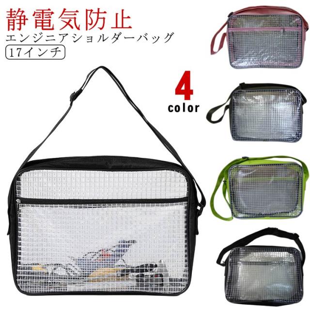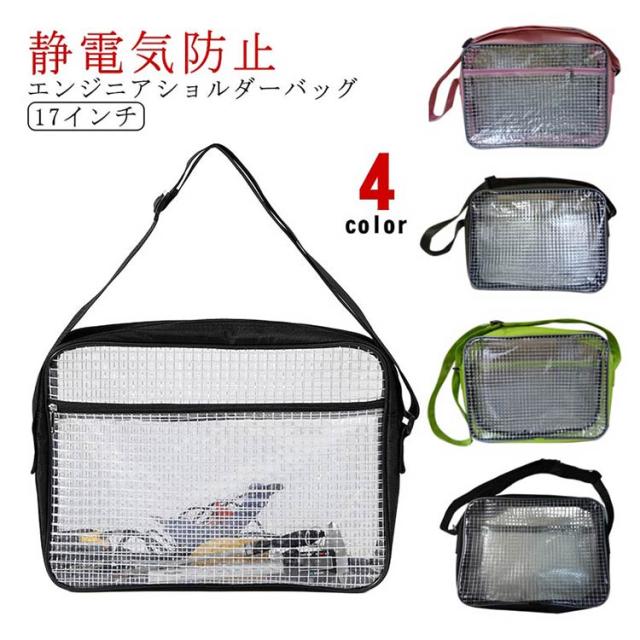防水 17インチ 肩がけ PVC 工具バッグ 帯電防止 静電気防止 エンジニアバッグ 斜めがけ 透明 クリア エンジニアバッグ クリーンルーム 仕事 工事 作業 丈夫 ビジネス 工場