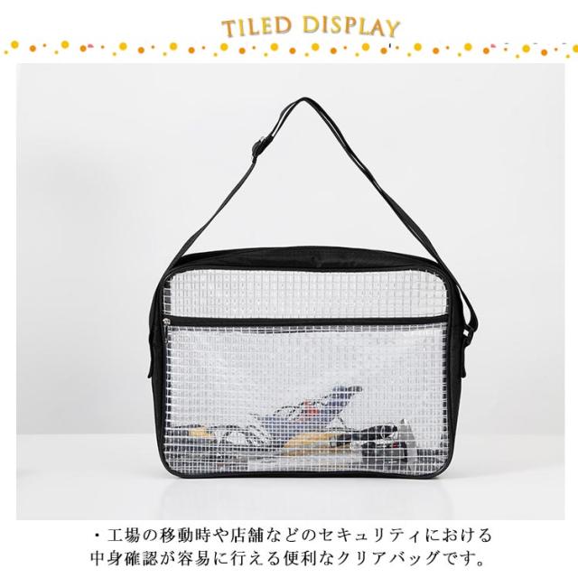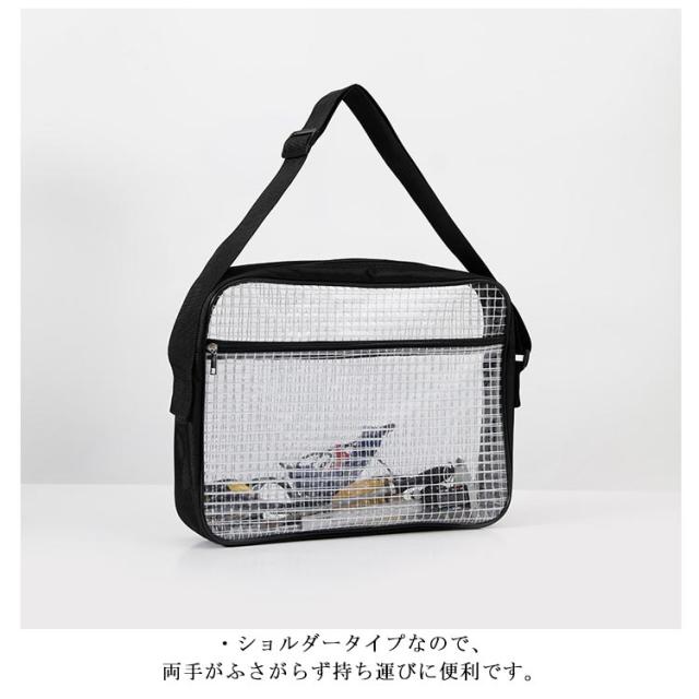 | ・エンジニアショルダーバッグ ・工場の移動時や店舗などのセキュリティにおける中身確認が容易に行える便利なクリアバッグです。 ・ショルダータイプなので、両手がふさがらず持ち運びに便利です。 ・ショルダーベルトは長さ調節ができます。 ・前面にファスナー付のポケット付き。 ・工場や現場のマイバッグにおすすめ。 | |