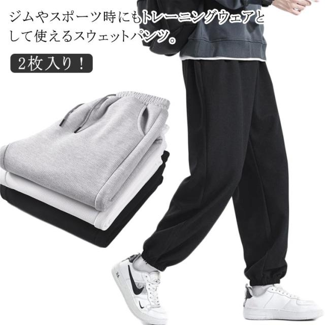 メンズ 春 ワッフル 無地 メンズ スウェットパンツ パンツ ワッフル 夏 2枚入り ジャージパンツ レディース ルームウェア ペア パジャマ アウトドア 下 秋 冬 服 ゆったり カジュアル スポーツ 部屋着 ズボン ロングパンツ 黒 白 グレー