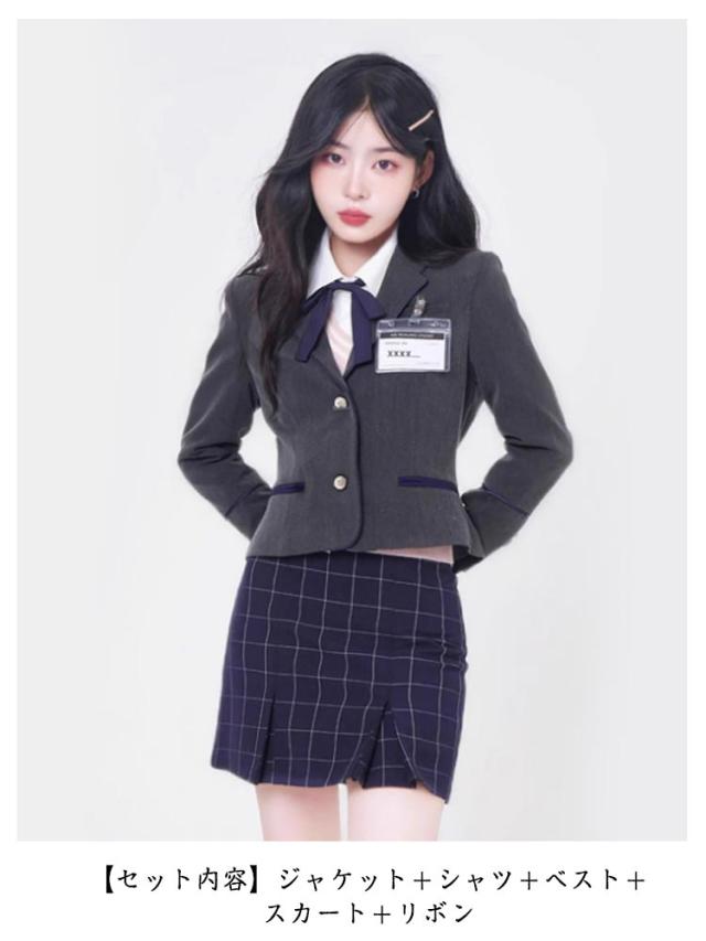 セットアップ 制服 スーツ 卒業式 韓国 女の子 スクール制服 卒業式 ジュニア上下セット 高校生 制服 学生服 スーツ ブレザー 女子高校生 シャツ 女子高校生 フォーマルスーツ セット 5点セット 長袖 スカートスーツ リボン 卒業式 送料無料