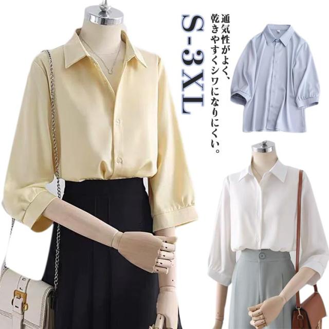 レディースブラウス シャツ レディース ブラウス ワイシャツ ワイシャツ 定番 オフィス きれいめ フェミニン カジュアル 事務服 おしゃれ 大きいサイズ 七分袖 フォーマル ベージュ 白 ホワイト イエロー 定番 ブルー