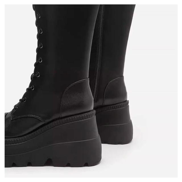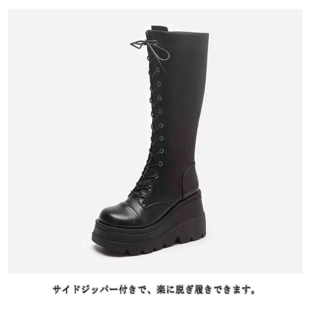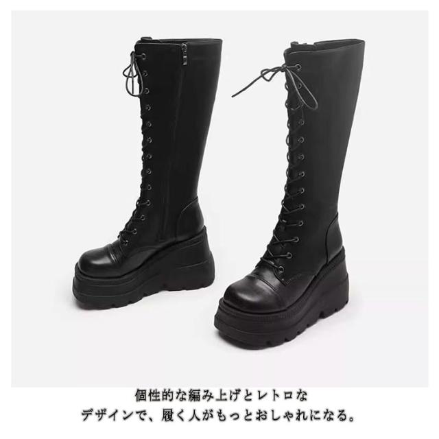 厚底ロングブーツ レディース 厚底靴 9cm コスプレ レースアップ 編み上げ 身長アップ 秋冬 パンク靴 9cm ブーツ 厚底ブーツ ロング ブーツ 厚底 安定感 軽量 脚長効果 アイドル ガーリー 推し活