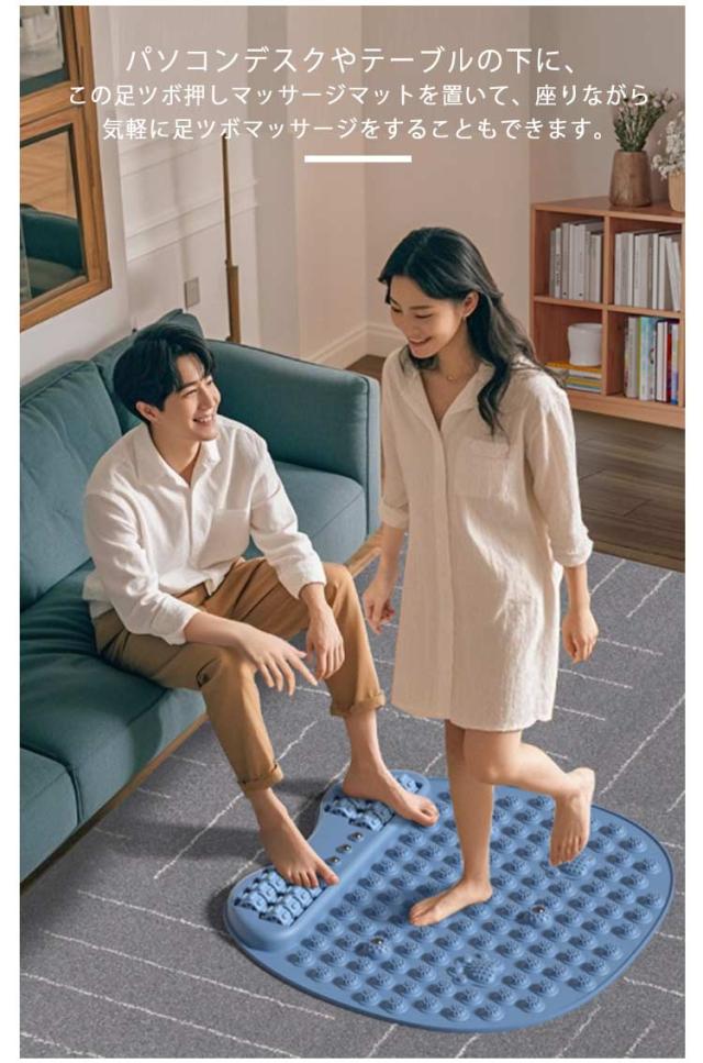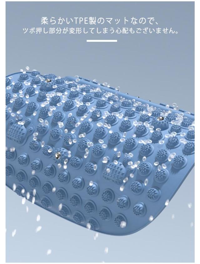 | 健康は足の裏から!日々の疲れを癒す足ツボマットです。 踏むだけで足の裏の反射区を刺激することで、新陳代謝と血液循環を促進します。 柔らかいTPE製のマットなので、ツボ押し部分が変形してしまう心配もございません。 玄関などに置いておくだけで、立ちっぱなしで仕事をした日や1日中歩き回った日に、家に帰ってから気軽に足裏マッサージます。 パソコンデスクやテーブルの下に、この足ツボ押しマッサージマットを置いて、座りながら気軽に足ツボマッサージをすることもできます。 パソコン作業などで座りっぱなしの方にもおすすめの足裏マッサージマットです。 汚れが付着しにくいマットで、もし汚れが付いてしまっても、簡単に水洗いで落とすことができます。 | |