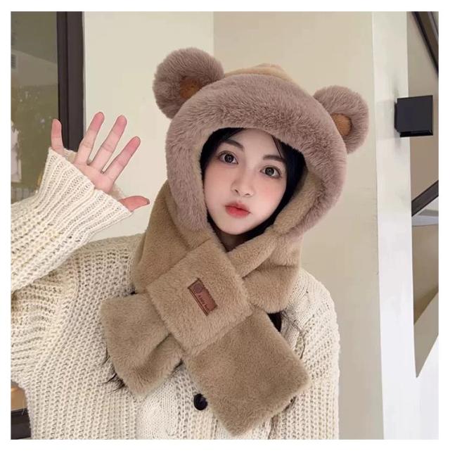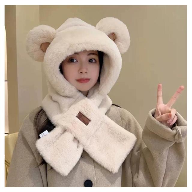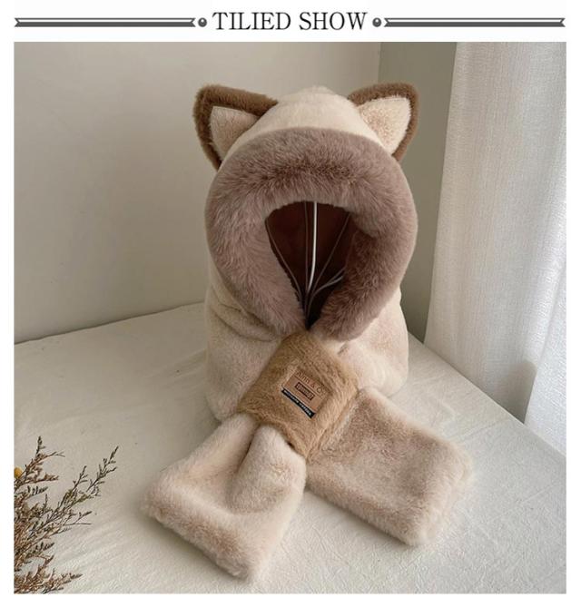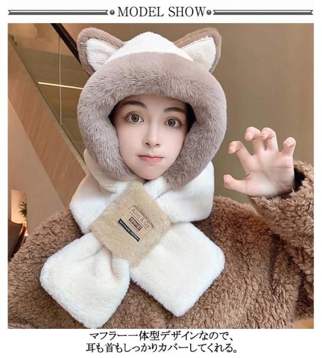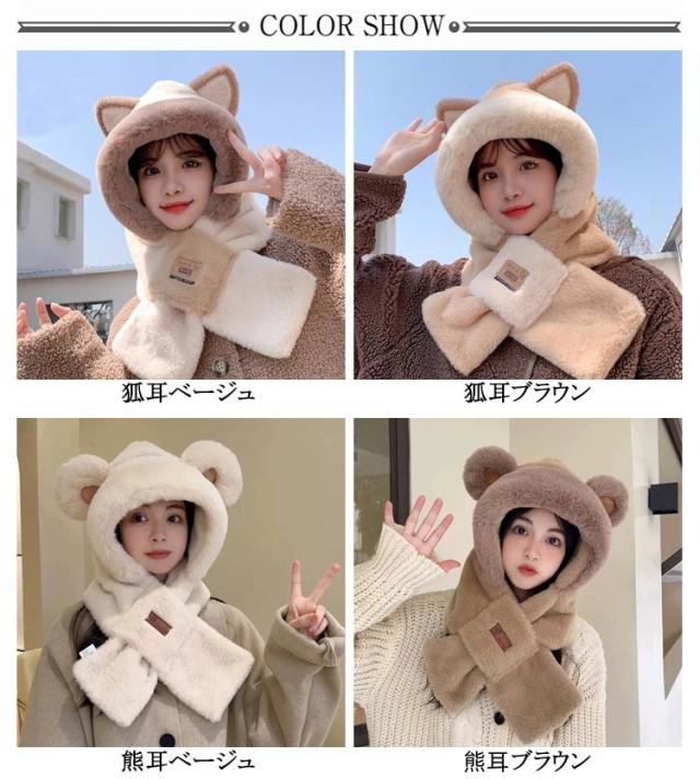 フード付き 一体型 ボア帽子 フードウォーマー レディース かわいい 帽子 ふわふわ ボア帽子 キツネ もこもこ 犬耳 狐 猫耳 くま耳 耳付き 防寒 アニマル 動物 厚手 冬 暖かい 帽子付き ネックウォーマー ストール