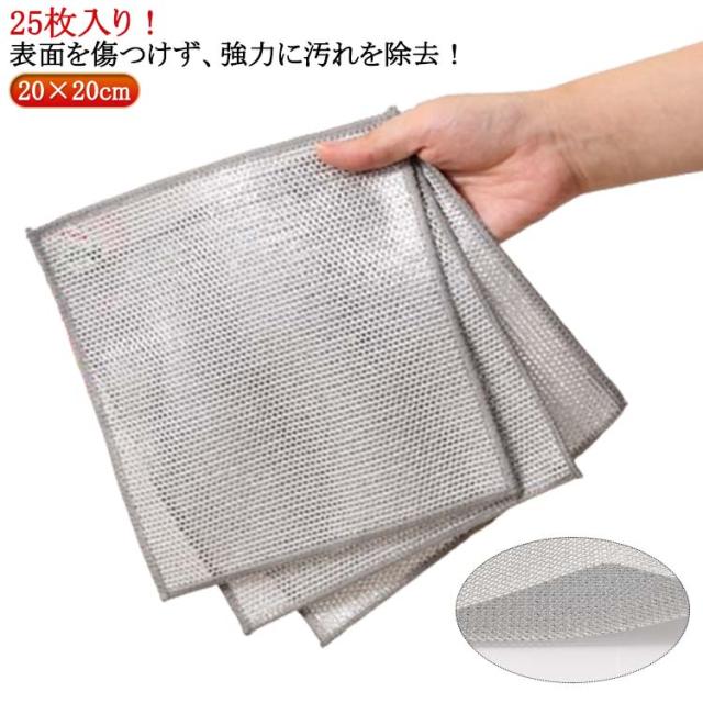 クロス 傷つけない ワイヤーふきん 25枚セット 2枚重ね 20×20cm ワイヤー食器用雑巾 厚手 食器洗い 食器洗い雑巾 メッシュ ワイヤーふきん キッチンタオル ボトル洗浄 食器拭き キッチンクロス 多機能 ノンスクラッチワイヤー 布巾 ぞうきん