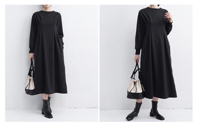 | 大人気−5kg見えワンピ ウエストタックデザイン M-L ウエストにタックを施しメリハリのある シルエットが魅力のワンピース。 楽ちんときれい見えを追究し、 こだわりの一枚に仕上げました。 ウエスト高めの位置にタックを入れ、 キュッとなったシルエットは後ろはシャーリング仕様で 締め付け感なく楽に着用できます。 ワンピにあると嬉しいポケット付き♪ ハリ感ととろみのある梨地ポンチ素材は秋から 春にかけてロングシーズン着用出来ます。 身体のラインを拾わないAラインで 体型カバーをしながらスタイルアップも叶えます。 靴やバッグ次第できれいめにもカジュアルにもなれる 着回し力抜群の優秀な一着です。 | |