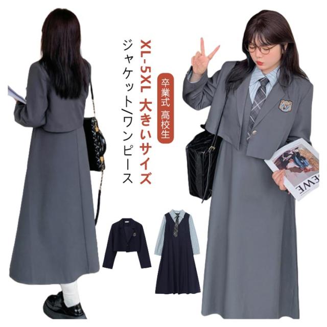 女子 体型カバー 卒業式 大人 女の子 卒業式 スーツ 単品 制服 長袖 セット 韓国 なんちゃって制服 高校生 入学式 卒業式 小学校 卒服 中学生 ブレザー ピアノ発表会 ワンピース 膝丈 フェイクレイヤード フォーマル ゆったり 灰 紺色 着痩せる XL